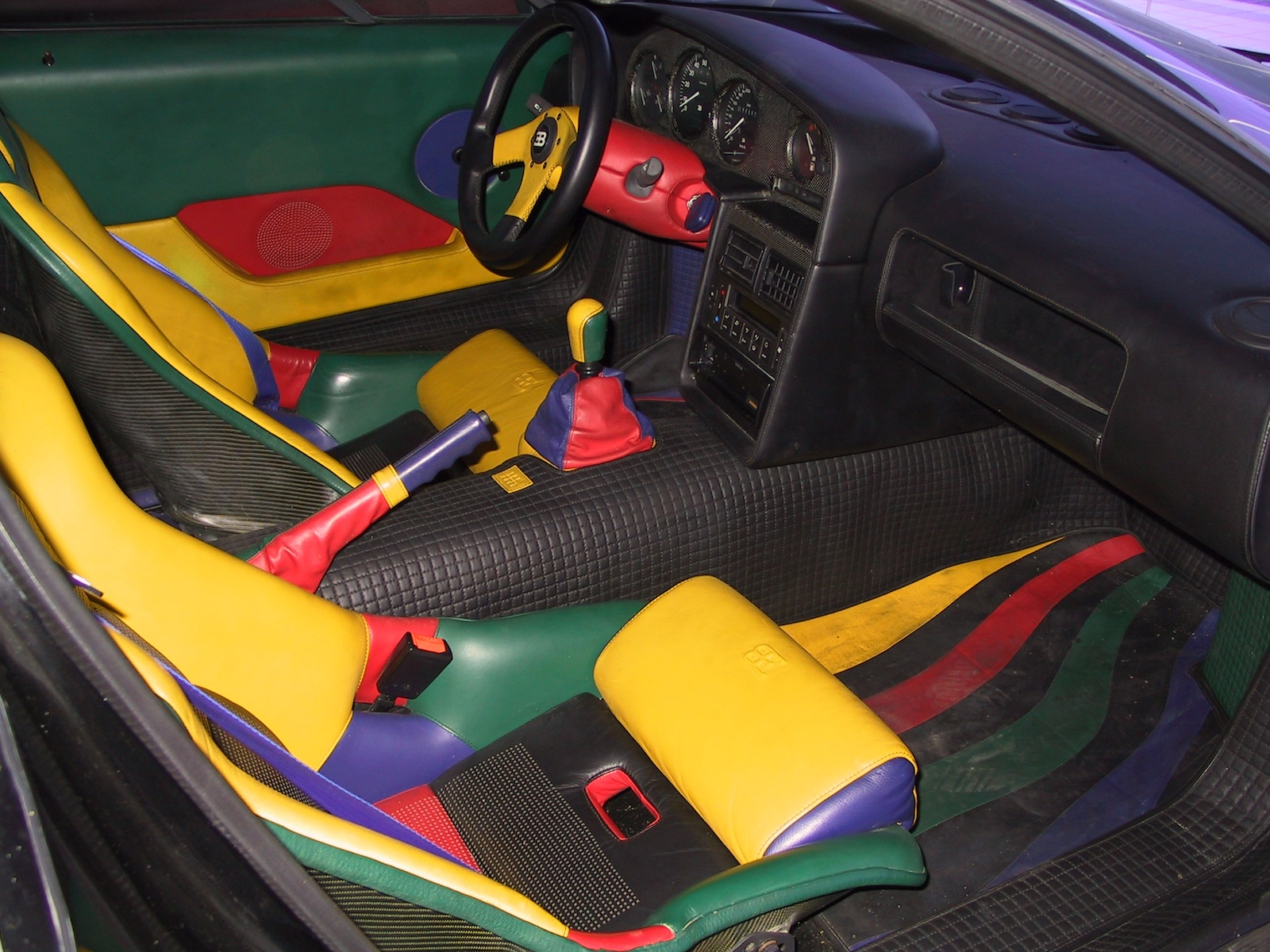 Bahagian dalaman kereta ini lebih gila lagi, dengan kombinasi warna yang menarik. Ia mungkin kabin kereta paling unik dan keren yang pernah saya lihat.
